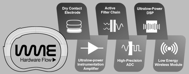 The core of W/Me resides in the special sensor we developed called the life spectrum analyzer (LSA). We started with the idea that we wanted to go beyond typical analytics such as heart beats per minute and estimated calories burned. In order to provide analysis on mental state, mental agility, and breathing, a more-sensitive solution is required.